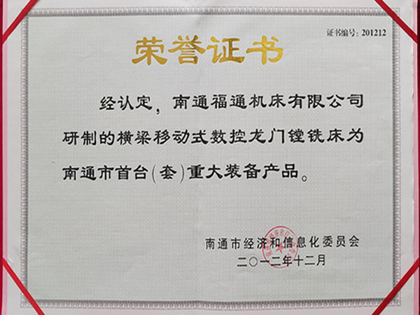 公司通過ISO9001:2015質量體管理系認證、ISO14001:2015環(huán)境管理體系認證、ISO45001:2018職業(yè)健康安全管理體系認證、先后榮獲:中國機床行業(yè)十佳品牌、江蘇名牌產(chǎn)品、江蘇省質量信得過企業(yè)、南通市科學技術進步獎、南通市AAA級重合作守信用企業(yè)、高新技術企業(yè)、南通市首臺(套)重大裝備產(chǎn)品等榮譽。